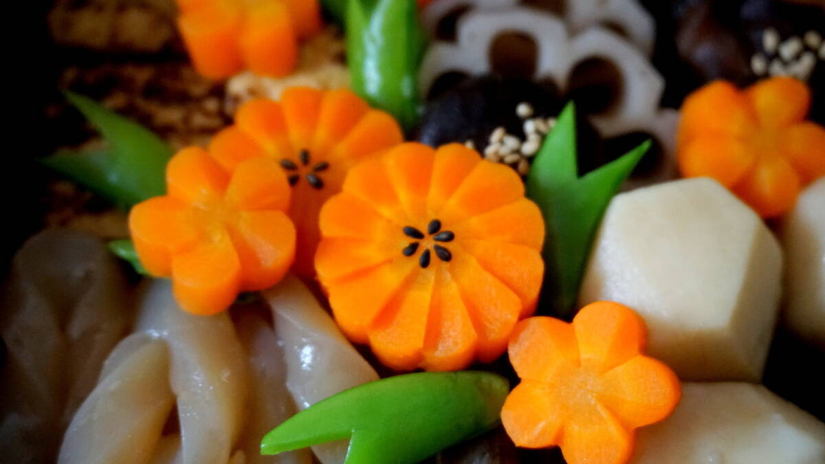 我が家のお節料理と花形人参のくり抜いた外側の使い方